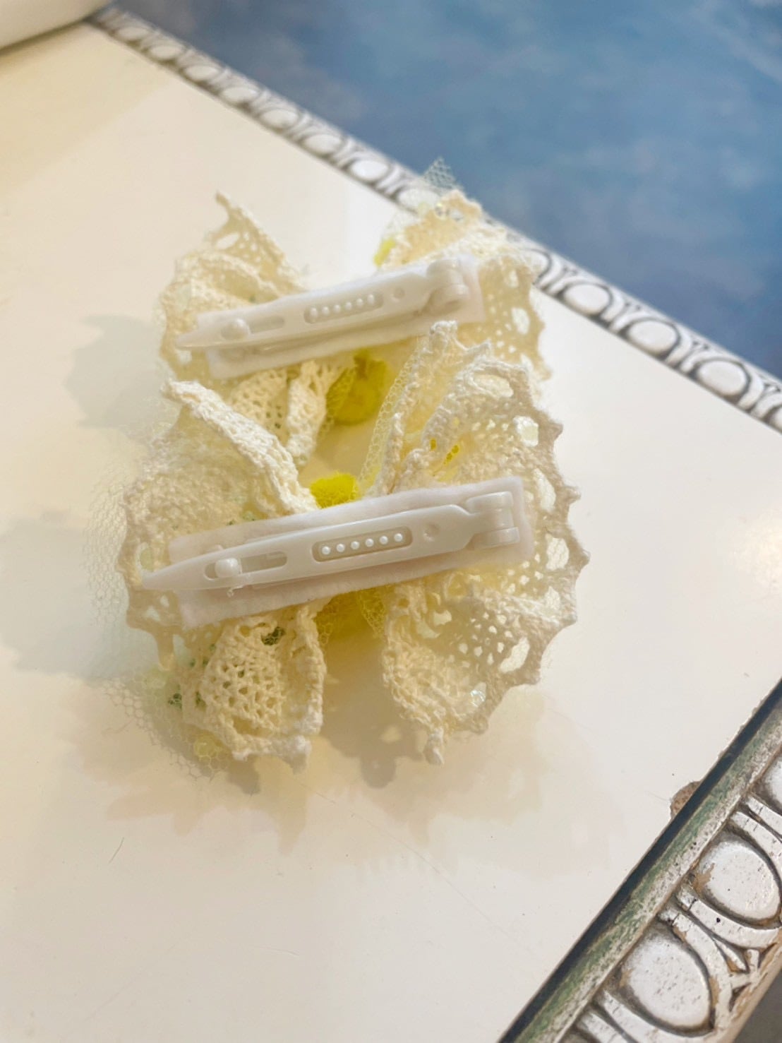アイボリーのコットンレースリボンに