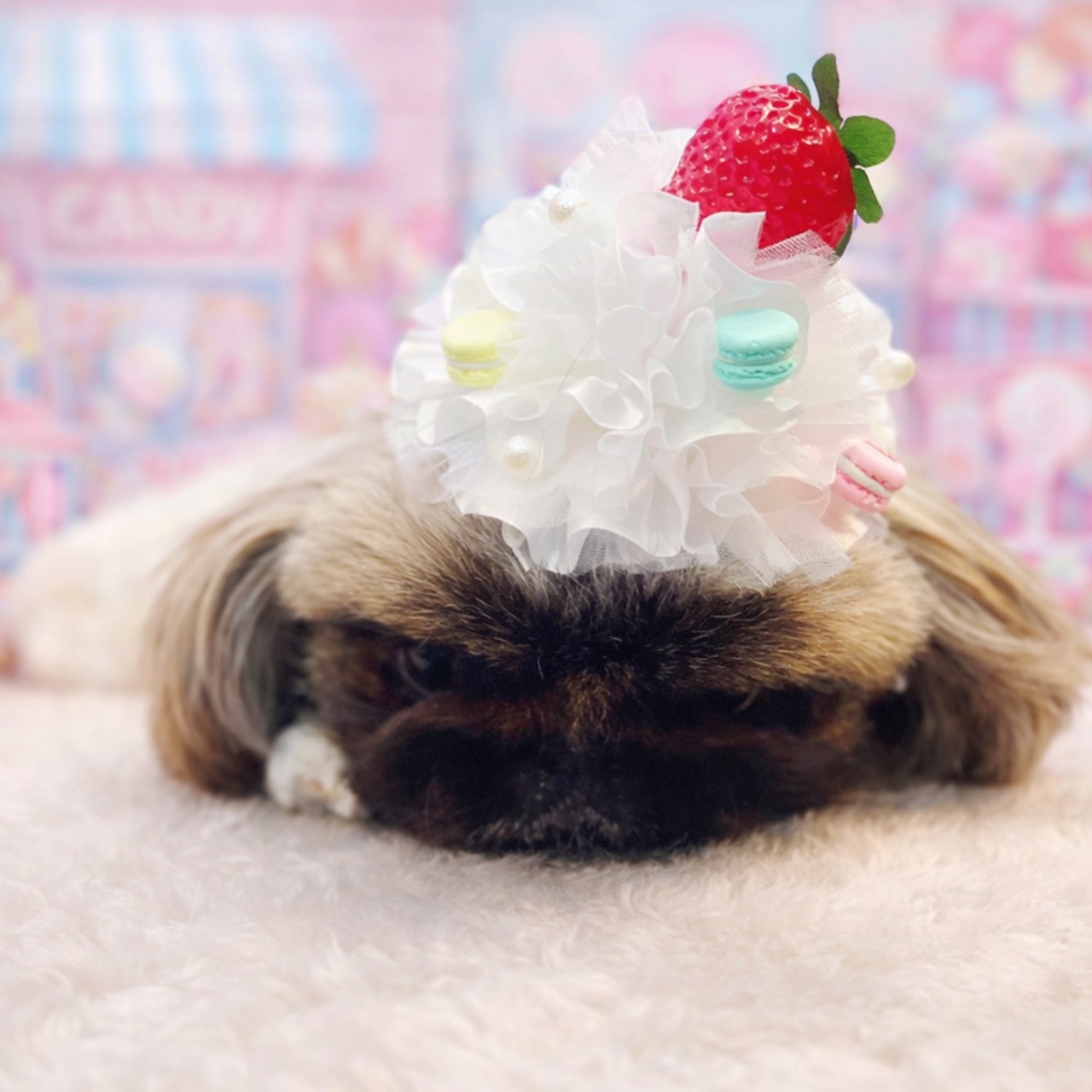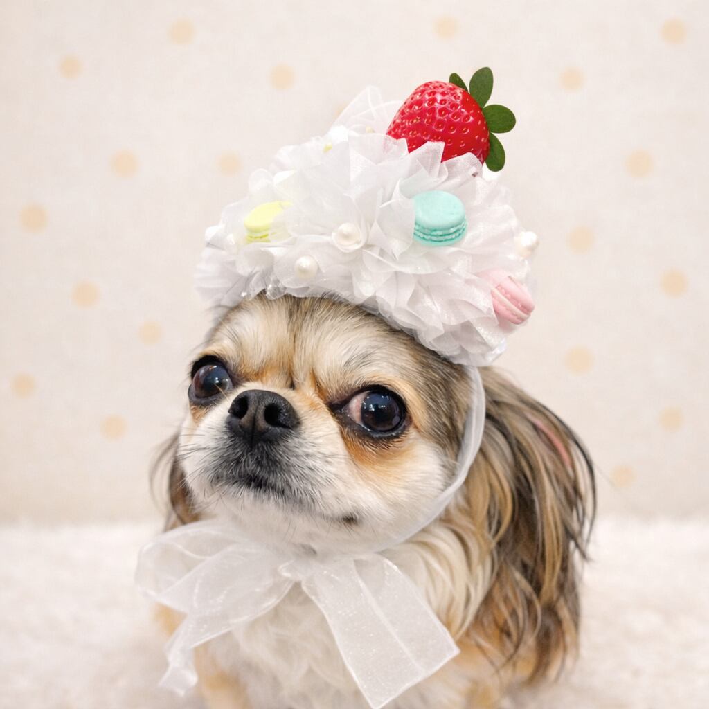 いちごホイップクリーム帽子…マカロンを添えて♡♡♡ペキニーズ